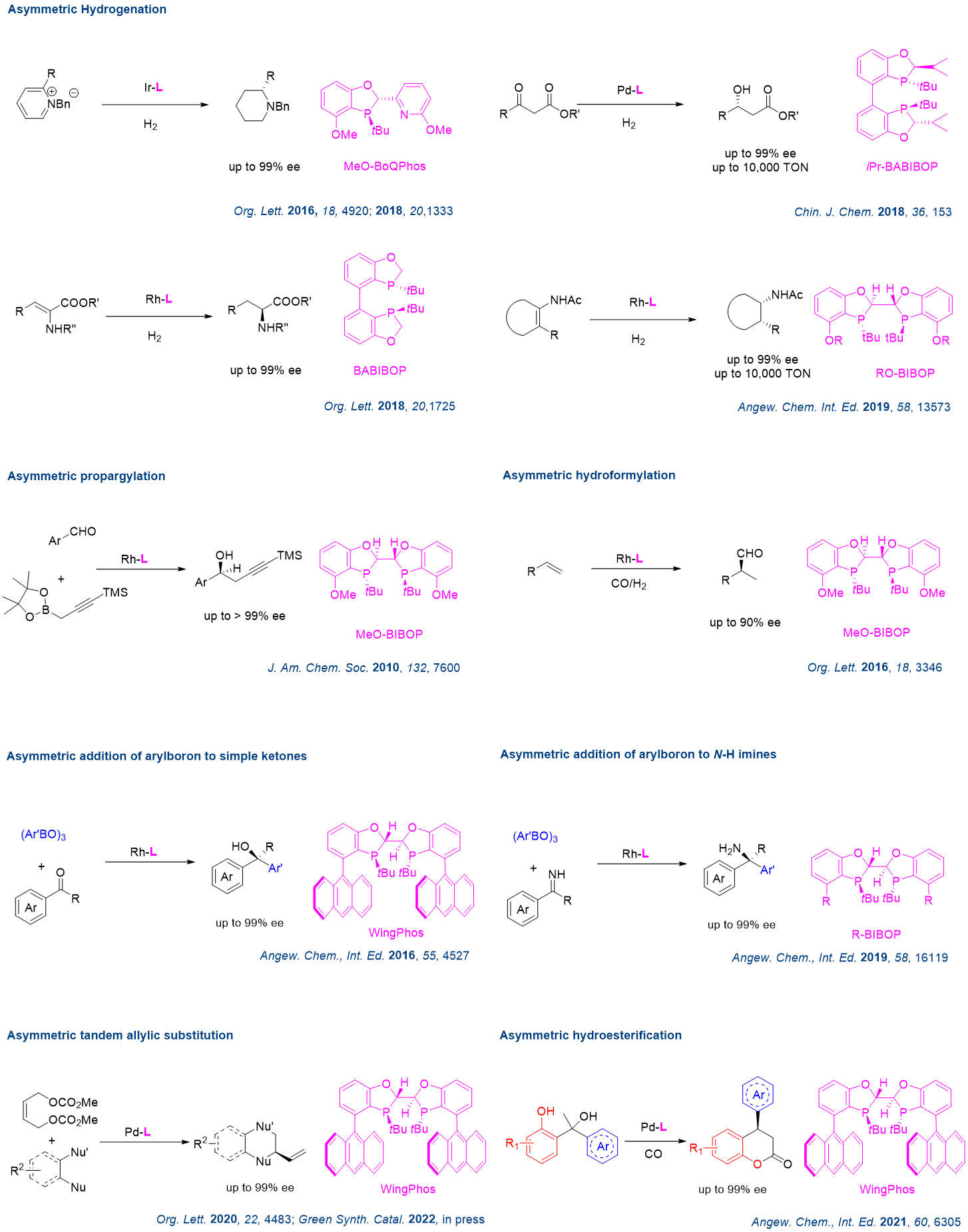不对称催化是合成手性化合物的最理想手段,不仅是当代有机化学学科的重点发展方向,也逐渐应用于手性药物、农药以及精细化学品的研发和工业生产中。在不对称催化反应中,手性催化剂是关键,而手性膦配体是手性金属催化剂的核心,直接影响了不对称金属催化反应的活性和选择性。赜军医药一直致力于研发原创性的特色手性膦配体,发展高效的不对称催化技术,至今已开发百余种具有原创性结构、高效的特色膦配体,服务医药、农药和精细化学品制造企业和学术机构。