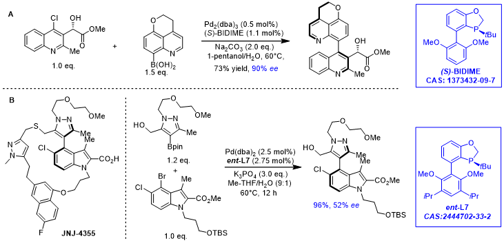 图6. Pd/BIDIME类型配体催化的不对称芳基-芳基偶联在药物合成中的应用