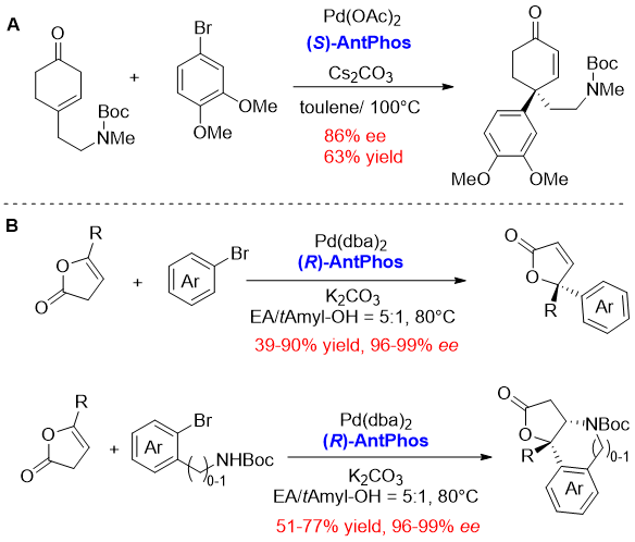 手性AntPhos可用于不对称Heck反应,构建手性季碳中心,并在天然产物